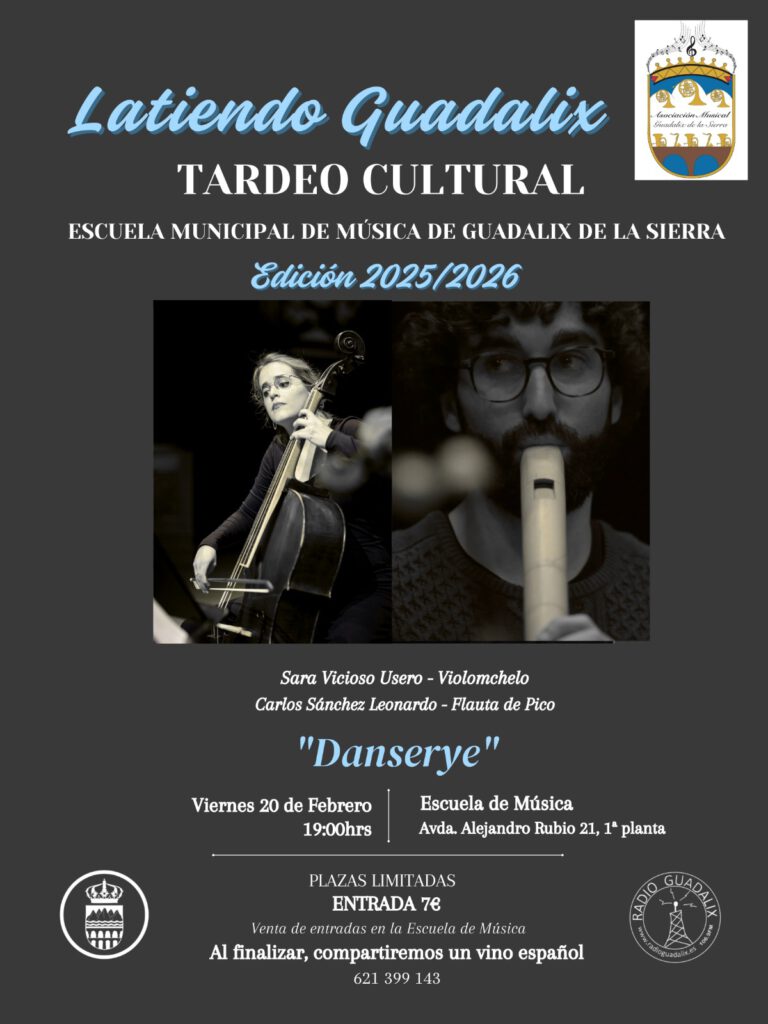 el 20 de febrero vuelve el tardeo cultural a la escuela municipal de música de Guadalix organizado por la Asociación musical Guadalix de la Sierra